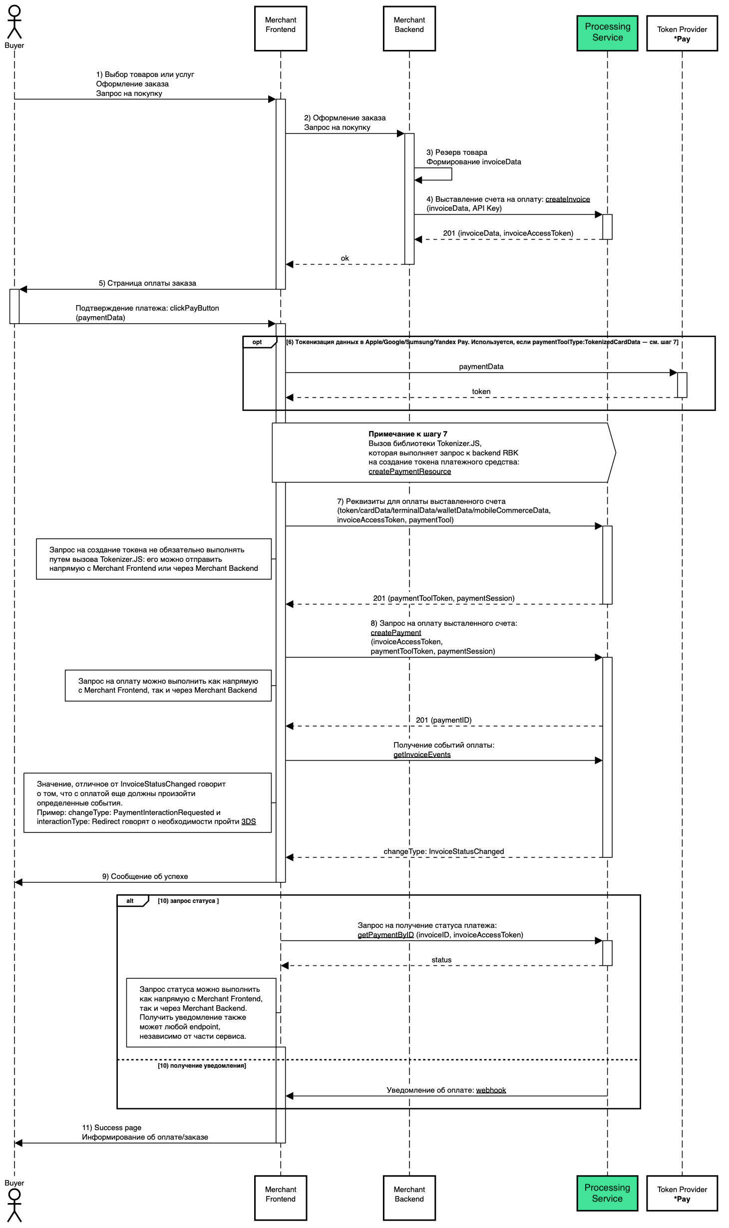Ниже приведен пример оплаты инвойса с web-сайта мерчанта в случае, когда платеж производится с его собственной платежной формы.